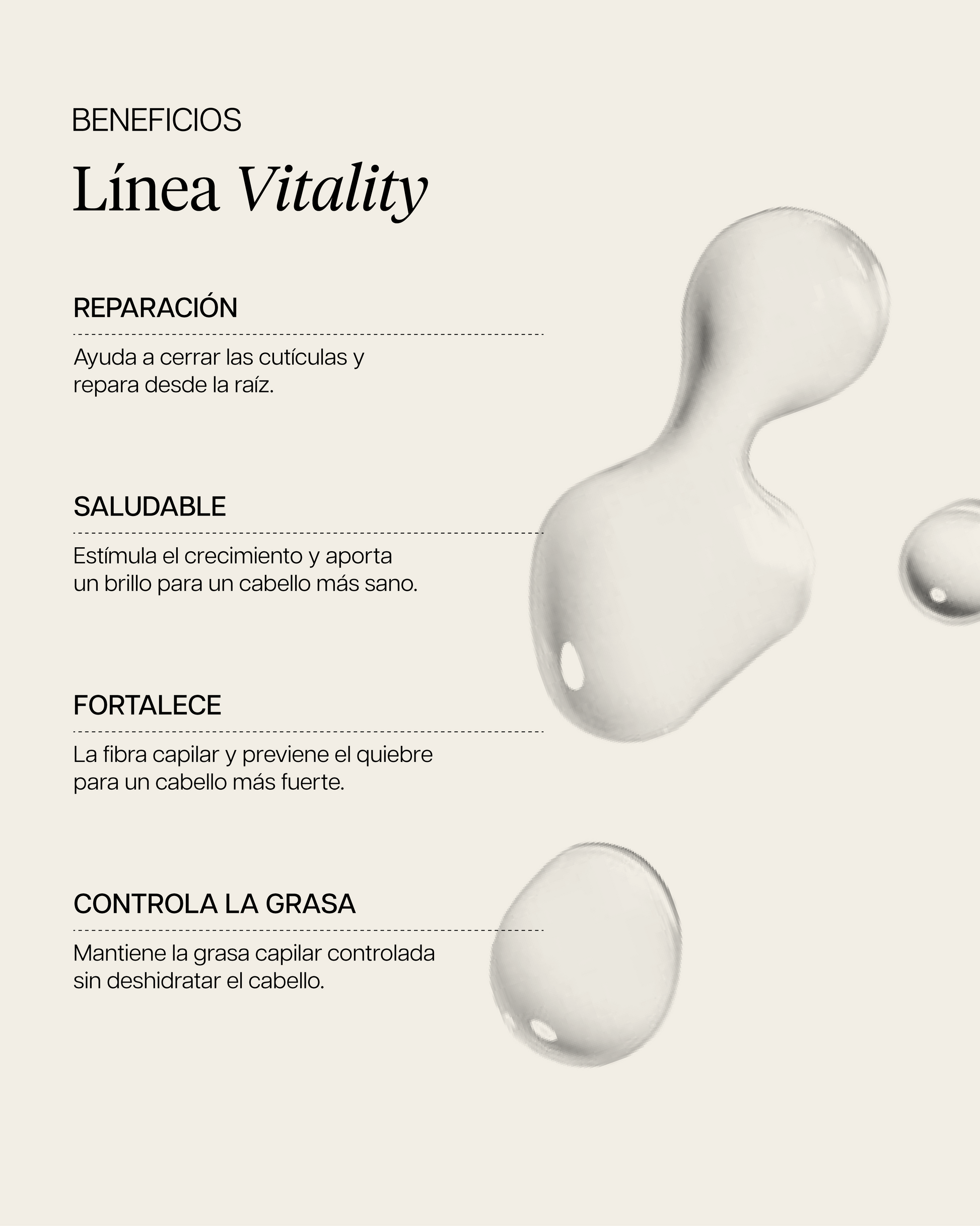 Vitality Leave-in: Aplica de medios a puntas en cabello húmedo, peina para distribuir. No enjuagar.